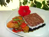 Ingrediente: 2 buc file de somn sare,piper boia de ardei dulce o mana de spaghetti(eu am folosit integrale) ulei de masline patrunjel verde Pentru sos: ulei de...
