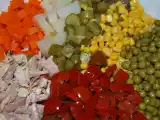 Ingrediente: 150 g piept de pui dezosat, fara piele, fiert si taiat cubulete mici 6 creveti medii, decorticati, fierti si taiati cubulete cativa creveti...