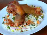 Ingrediente: 5-6 cartofi potriviti o jumatate de gulie o ceapa alba mica 3-4 morcovi 300 gr pastrama de porc o cana de bulion 4 linguri de ulei 2 linguri de...