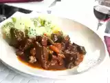 Ingrediente: 150-170 g bacon 1 LG ulei de masline 1300 g carne macra de vita, taiat in cubulete de 5 cm 1 morcov feliat, o ceapa feliata 1 l-ta sare 1/4 l-ta...