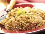 Ingrediente: 4 fileuri de pangasiu 1 cana orez cu bob lung 2 morcovi 1 ceapa potrivita 1-2 ardei grasi 1 pahar vin alb sare, piper, curry rosii in suc propriu...