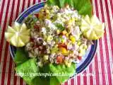 Ingrediente: - 200 g orez cu bobul lung; - 3 ardei gra?i diferit colora?i; - 1 conserv? mic? de porumb; - 2 conserve de ton; - ulei de m?sline, sare, piper, p?trunjel. Mod de preparare: Speli orezul, îl pui la fiert în ap? cu sare, scurgi apa ?i îl la?i