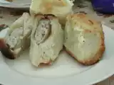 Ingrediente: 2 oua 500 ml iaurt umplutura: 0,5 kg piept de pui tocat 2 cepe tocate sare,piper o lingura mare de menta uscata aluatul: 600 g faina 1 cub de...