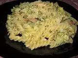 Ingrediente: 250 g paste din grau dur un broccoli mediu 100 g sunca de porc 5 linguri smantana 100 g cas 25 g branza Grana Padano sare,piper, oregano, ulei de...