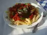 Ingrediente: 500 g penne o ceapa mare 5-6 linguri de ulei de masline extra-virgin un morcov 2-3 catei de usturoi 1 kg rosii,decojite si taiate cubulete 2...