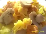 Ingrediente: 250 g paste 400 g ciuperci champignon 2 morcovi 4 catei usturoi 2 rosii 50 ml vin alb ulei de masline patrunjel sare piper parmezan sau cascaval ras