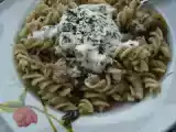 Ingrediente: 250 g paste mici 250 g smantana 3 lingurite sos pesto 2 lingurite mustar sarat dijon 2 linguri ulei de masline pentru sos si una pentru ornat 100...