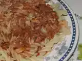 Ingrediente: 500 g fusilli, 50 ml ulei de masline, o ceapa, 3 catei de usturoi, o conserva de peste (ton de preferinta) 500 ml suc de rosii, busuioc, oregano,...