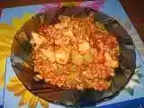 Este foarte bun, usor de facut si dietetic ! O ceapa taiata marunt se prajeste in ulei de masline, se adauga pieptul de pui taiat cubulete si se amesteca pina ce carnea isi schimba culoarea.Se adauga sare, piper, boia de ardei iute si o cana de