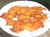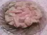 (laborios,cca 8 portii) Preparare; Se portioneaza pieptul de pui(parte mai groasa,cam 6 buc,la 3 piepti de pui mari),apoi se intind usor cu ciocanul de snitele,acoperite cu un celofan ,pentru a nu rupe carnea.Bucatile obtinute se sectioneaza pe lung, fara