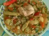 Ingrediente: 3 cartofi o ceapa un ardei un morcov o mana fasole verde 2-3 linguri de orez 2-3 rosii usturoi 1 pastarnac 1 radacina patrunjel o telina mica...