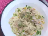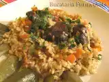 Ingrediente: 1 ceapa mare 2 morcovi 1 pastarnac 1 ardei rosu 1 ardei verde o mana de mazare cateva ciuperci 2 cani orez 2-3 rosii sau o conserva de rosii in...