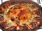 Ingrediente: 300 g ficat 1 pui (mai maricel) legume: 2 ardei rosii, o bucatica de telina, 2 morcovi, 5-6 ciuperci mai mari, usturoi, 1 ceapa o punga de orez...