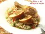 Ingrediente: Carne de cocoș (Am folosit pulpa superioara si un gat), O cana cu orez, Un morcov ras, Un ardei capia (optional), 2 cepe, Un sfert de radacina de...