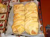 Ingrediente: Aluat foietaj (depinde cate portii faceti,eu am folosit 1 aluat) Stafide inmuiate in prealabil in lapte 1kg branza de vaci nucsoara zahar 3-4...