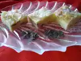Ingrediente: un pachet foi de placinta, 250 g mascarpone, 250 g ricotta, 5 oua,zahar, un praf de sare, vanilie, coaja rasa de la o lamaie, unt topit pentru uns...