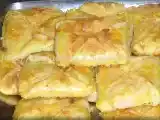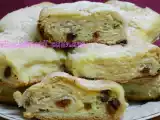 Ingrediente: 250 g unt, 400 g făină, un praf de sare, 100 ml apă, 500 g brânză de vaci, 3 ouă, 5 linguri zahăr, 5 linguri griș, 5 linguri lapte, 50 g stafide,...