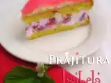 Ingrediente: 1 blat de pandispan, dupa reteta de aici Pentru crema de iaurt si capsuni: 300 ml iaurt alb 200 ml frisca lichida 300 g capsuni sucul de la...