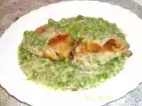 Pulpe de pui cu mazare in sos alb
