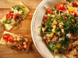 Ingrediente: 4 rosii tari 1 ceapa verde 1 legatura frunze de patrunjel cateva frunze de menta 100 g cous-cous 1 lamaie 3 linguri de ulei de masline sare