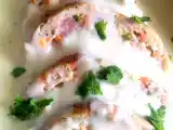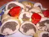 Ingrediente: 1 piept de pui 2 oua 3 catei de usturoi 1 ceapa patrunjel sare si piper rozmarin Pentru umplutura: 100 g cascaval 50 g telemea boabe de piper...