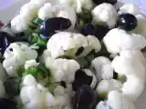 Ingrediente: 2 cani si jumatate cu buchetele de conopida proaspata putina sare apa 1 fir de ceapa verde putin piper negru macinat 10 masline negre mari si 2-3...