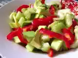 Ingrediente: 1 avocado, curatat de coaja, taiat cuburi, 2 tulpini de telina, taiate julien, 1 ardei capia , julienat si el, suc de la 1/2 lamiie, 1 lingura...