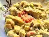 Ingrediente: 2 lipii mari sau 4 mici 500 g piept de pui 750 g cartofi congelati sau naturali 2 castraveti in otet sau murati o ceapa mica maioneza ketchup...