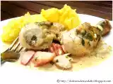 Ingrediente: 6 pulpe superioare dezosate 400 g ciupercute din cutie sau proaspete 200 grame smantana 2 linguri de faina o ceapa medie 3 catei de usturoi 1 nuca...