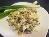 Ingrediente: 6 oua fierte tari, 150 g telemea de oi, 2 lg de smantana, 2-3 codite de ceapa verde. Pt. crema de somon: 150 g somon afumat, 100 g unt, 1 lg zeama...