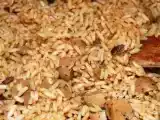 Ingrediente: 200 gr ciuperci intregi (conserva) 100 ml sos de soia 50 gr unt 100 gr orez brun 50 gr masline 1 buc ghimbir 2 linguri patrunjel uscat sare, piper
