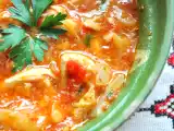 Tocanita de ghebe cu ardei copti Felul principal Foarte ușor 20 min 25 minIngrediente: Ghebe Ardei copti O jumatate de gaina afumata Sos de rosii Ceapa Usturoi -