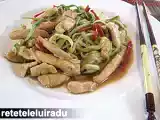 Ingrediente: 400 gr de piept de pui 1 cm ghimbir proaspat ras 1 catel de usturoi 8 tulpini de coriandru 2 linguri sos de soia 1 lingura sos de stridii 2 morcovi...