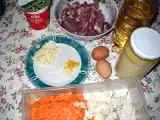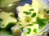 Ingrediente: 6 oua 100 g faina 100 g gris 100 g cascaval 100 g unt sare si piper 800 g carne de pui 2 cepe 1 morcov 1 bucata telina 1 radacina patrunjel...