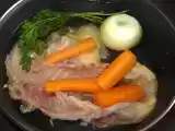 Ingrediente: 1 pui intreg aprox 1 kg de morcovi 1 pastarnac mare 1 radacina mica de telina sau 2-3 bete de telina 3 Lg de zahar 2-3 frunze de dafin mari 2 cepe...