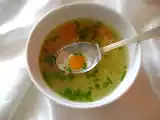 Ingrediente: 2 morcovi taiati rondele albitura: pastarnac, telina marar gris 1 ou sare piper o pulpa de pui sau orice bucata de pui cu putina grasime (se poate...