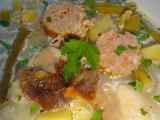 Ingrediente: 3 cartofi mari radacina de telina cat pumnul 1 morcov mare 1 ceapa 2 catei de usturoi o cutie mica de smantana patrunjel cozi de ceapa verde...