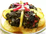 Ingrediente: 3 cartofi mari 400 g de spanac congelat 100 g de parmezan ras 100 g branza feta jumatate de ardei gras rosu o ceapa mica 4 linguri de ulei sare,...