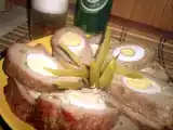 Ingrediente: 500 g piept de curcan 2-3 linguri mustar 200 g branza telemea 100 g cascaval 80 g masline negre fara samburi 1/2 ardei gras rosu 1 fir carnati...