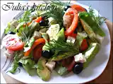 Ingrediente: 2 rosii potrivite un avocado 4-5 frunze salata verde 10 masline kalamata 50 g branza feta un fir ceapa verde patrunjel verde dupa gust sare si...