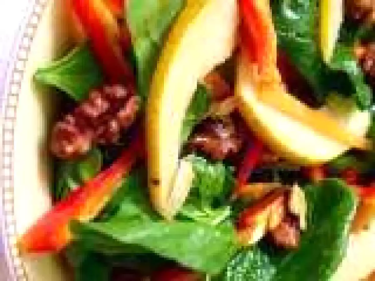 inspirata de chef chilly ,o prezenta proaspata si picanta in blogosfera culinara romaneasca , am purces in prepararea acestei salate de toamna,inarmata cu :frunze de spanac ,pere feliate,miez de nuca,ardei capia taiati bastonase,morcovi taiati si ei tot bastonase .am pregatit si un dressing simplu,otet de mere,putin ulei de masline,sare ,piper proaspat risnit .