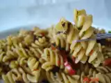 Ingrediente: 100 ardei copti, taiati bucatele 100 g peste afumat, curatat de oase si piele si rupt bucatele 160 g fusilli uscate 50 g masline verzi umplute 1...