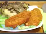 Ingrediente: 500 g snitele de porc 150 g ciuperci champignon 1 ceapa 1 lingura faina 1 lingura unt 100 ml vin rosu 100 ml ulei 1 ou 2 linguri faina 2 linguri...