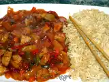 Ingrediente: 600 g carne slaba de porc (muschi), taiata cubulete 5 linguri ulei de arahide sau floarea soarelui 4 catei de usturoi, tocati marunt 3 cm de...
