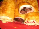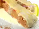 Ingrediente: 1 pachet aluat de strudel 3 mere rase, scortisoara, zahar, zaharvanilat branza rasa, 1 ou