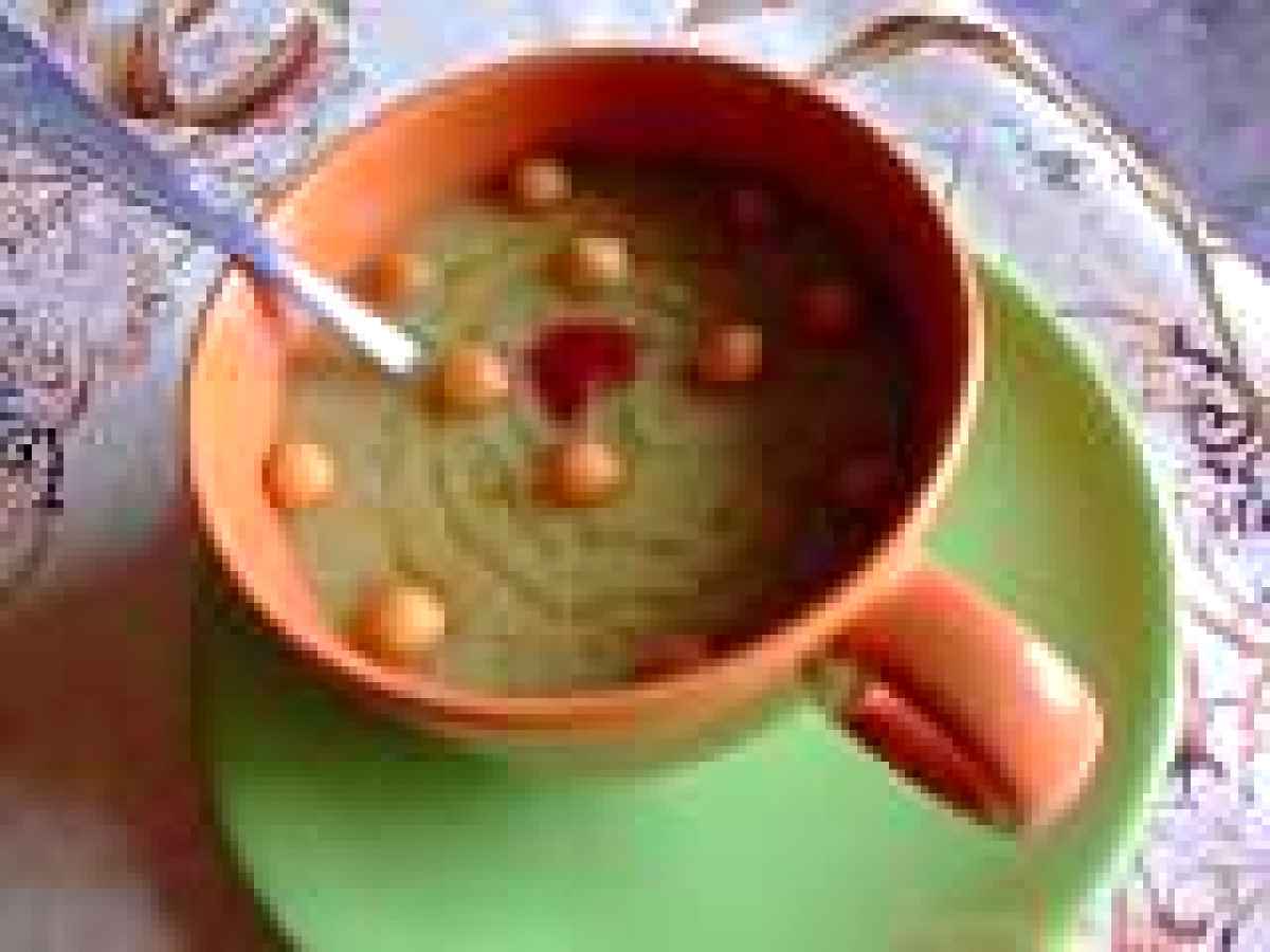 Am servit-o cu perlute de paine prajita, ornata cu cativa stopi de ulei de masline si paprika iute.