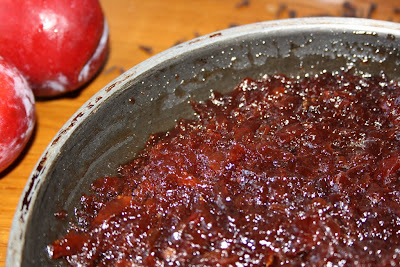 Cat timp aluatul se odihnea in frigider, din 500g de prune, am facut un mini-gem aromat - le-am tocat marunt, si le-am fiert impreuna cu 100g zahar, scortisoara, nucsoara, cuisoare si praf de ghimbir.