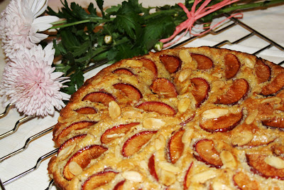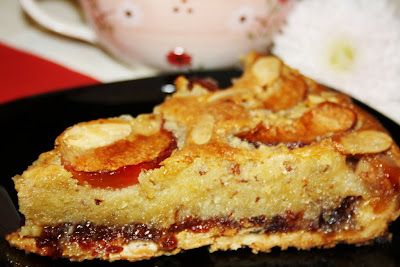 Tot Jamie m-a scos din impas. Am cumparat niste prune, hotarata sa fac ceva "tomnatic" :p cu ele, dar nu stiam ce. Asa ca, dupa ce mi-am luat la puricat cartile de bucate, m-am hotarat sa fac tarta asta. Nu e foarte departe de o tarta obisnuita, doar ca intre crema si blat are un strat de gem (eu l-am facut ieri din jumatate din prune - dar daca aveti gata facut cu atat mai bine).