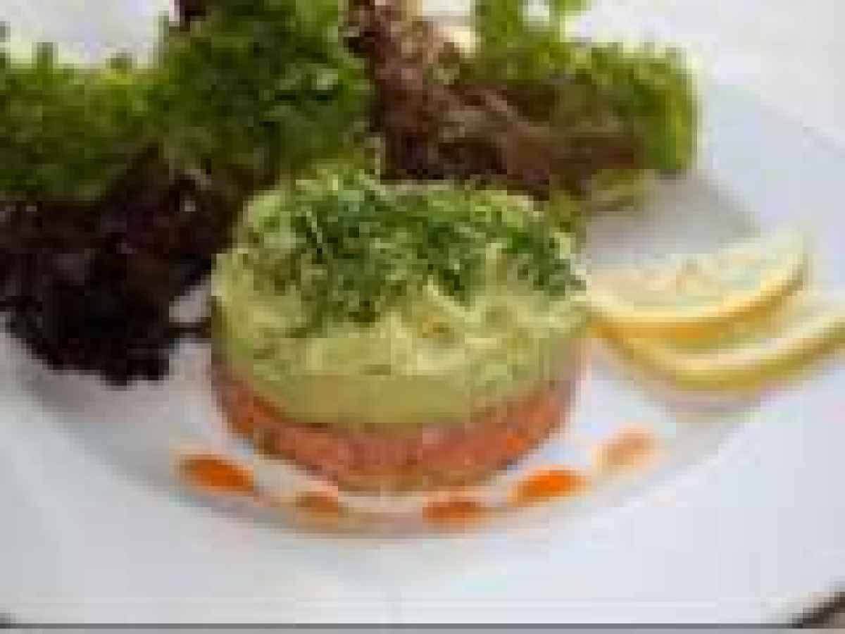 Tartarul cu crema de avocado se pot face ?i pentru petreceri sau ca aperitive. Se a?eaz? câte o linguri?? de tartar pe un biscuite s?rat, se pune o linguri?? din crema de avocado deasupra ?i se orneaz? cu ceva verde?uri.