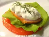 Ingrediente: 50 g pastrama din piept de pui 1 rosie 2 frunze salata verde 50 gr cottage cheese cu 5% grasime un varf de lingurita praf de usturoi 1 lingura...